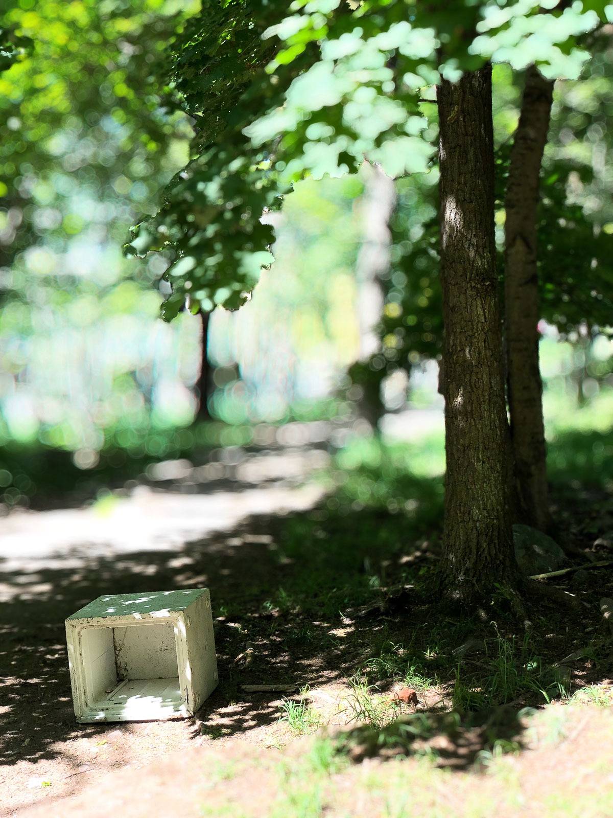 I rush a bit to not miss the next train. As I come out of the path through the woods something catches my eye. It’s odd how nice that looks, I think to myself. I pull up the shiny slate from my pocket and it instantly lights up. I hold it up in front of me and in seconds I’ve captured the scene. The slate goes back in my pocket as I head down the stairs to the subway.