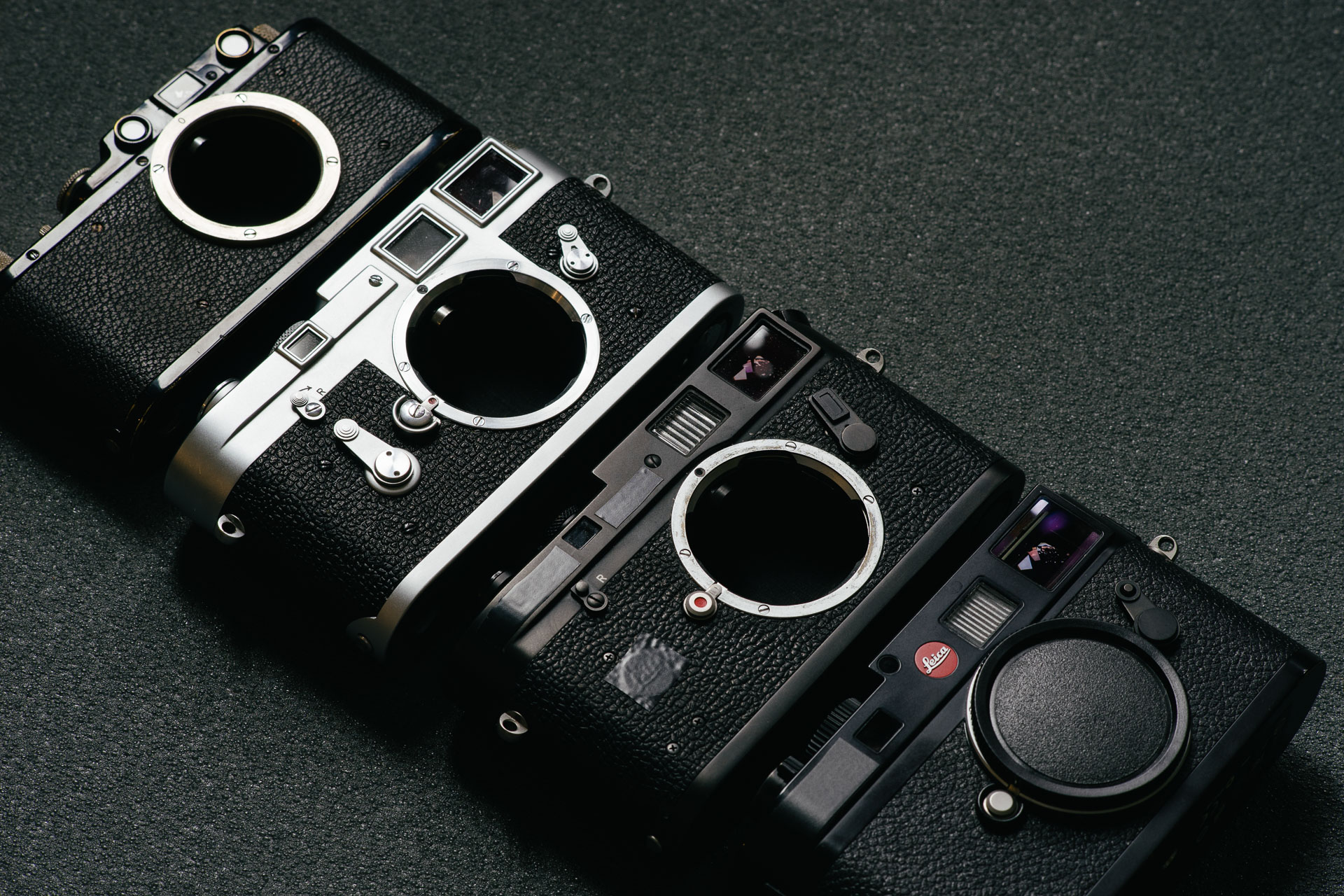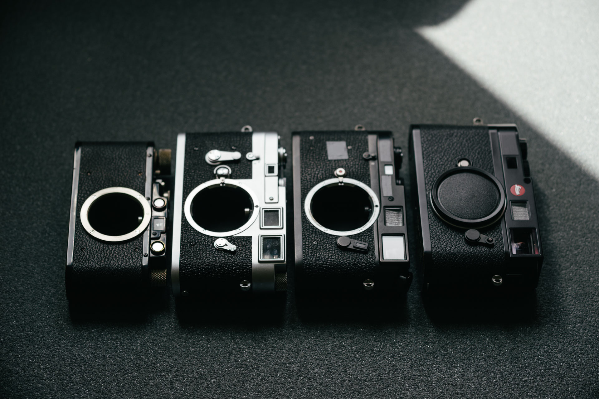 From left to right – Leica II, M3, M4-P & M9.