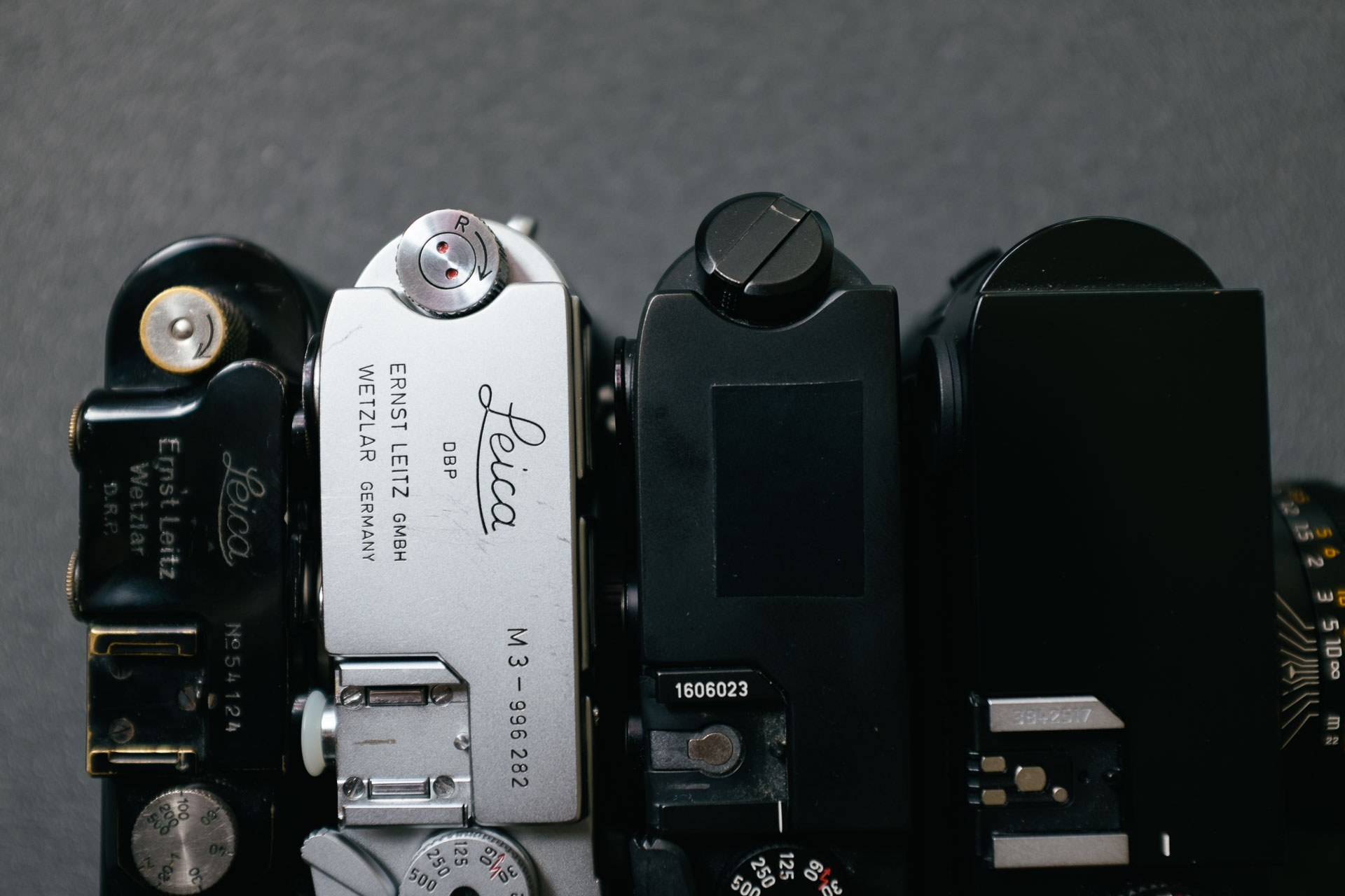 * For the sake of brevity I might state that a feature is added or changed in one of these cameras specifically but often changes have actually been made in an intermediate iteration. There are also a lot more differences between the cameras than what I’ll be able to highlight here. For a complete rundown of when a specific feature was added or tweaked the Wikipedia entry on Leica Camera is a good start.