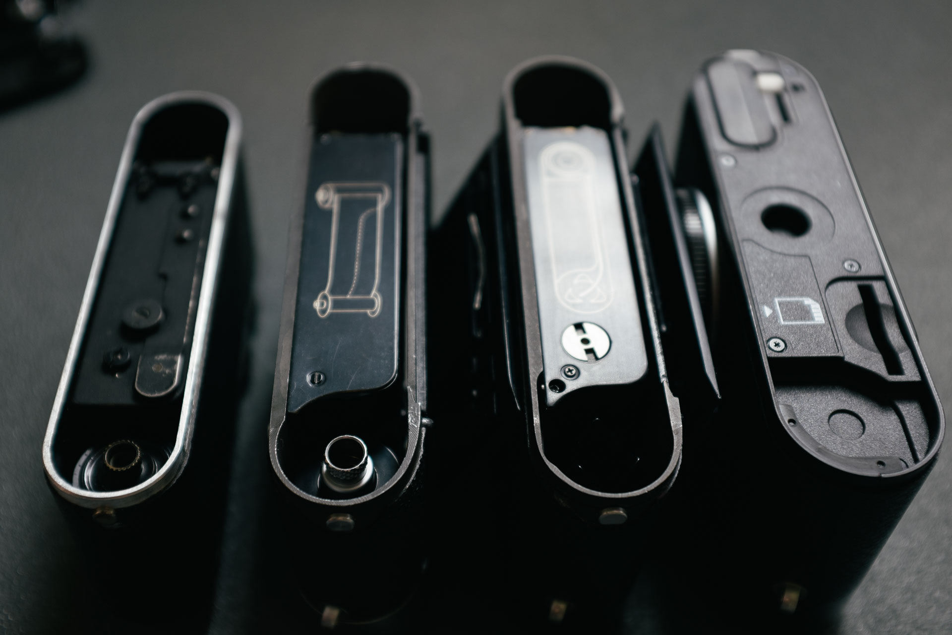What’s shared across the range of cameras is the removable baseplate for accessing the internal compartment. This idiosyncratic approach is at times berated as unnecessary and needlessly complicated. Some argue that a swing open back offers easier loading without significant drawbacks. Still Leica has chosen to stick with the same approach even into the digital era, arguing that it improves structural rigidity of the cameras.