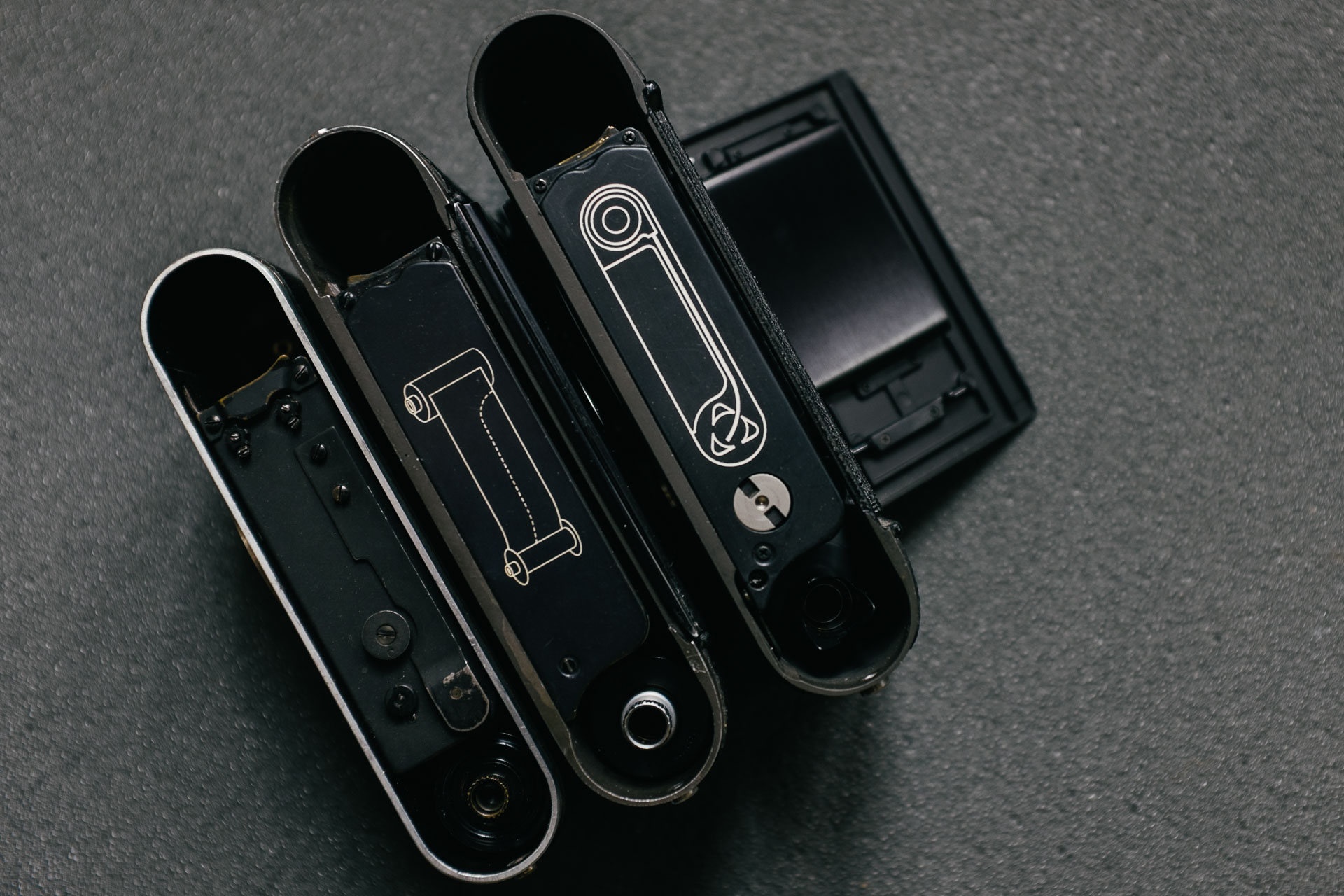 The loading process goes through a very clear iteration across the film cameras.