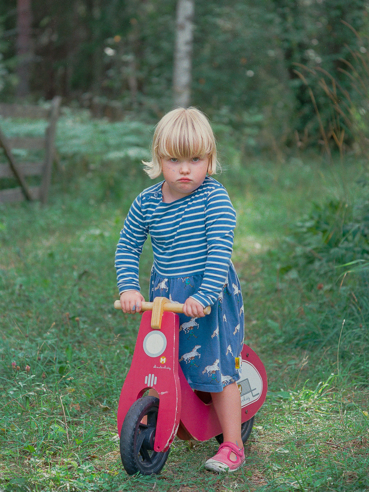 I quite like the perspective that a 90mm lens offers. There's plenty of compression but everything still has depth and definition. That the Elmar-C performs well with a very transparent signature makes the experience nicer still. In this instance, my kid seems less impressed.
