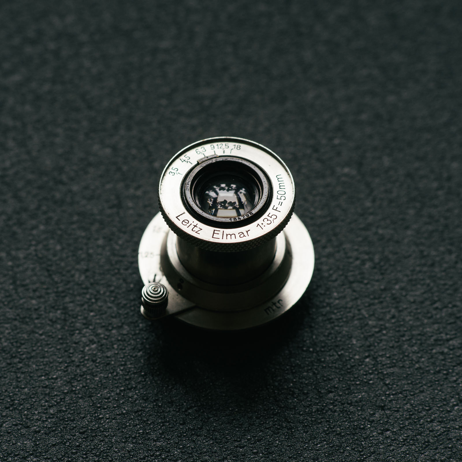 Later new glass types made it possible to simplify the lens to have one element less in the rear group. This made for better performance and simplified production. This revised four element design was renamed and the Elmar 50/3.5 was born.
