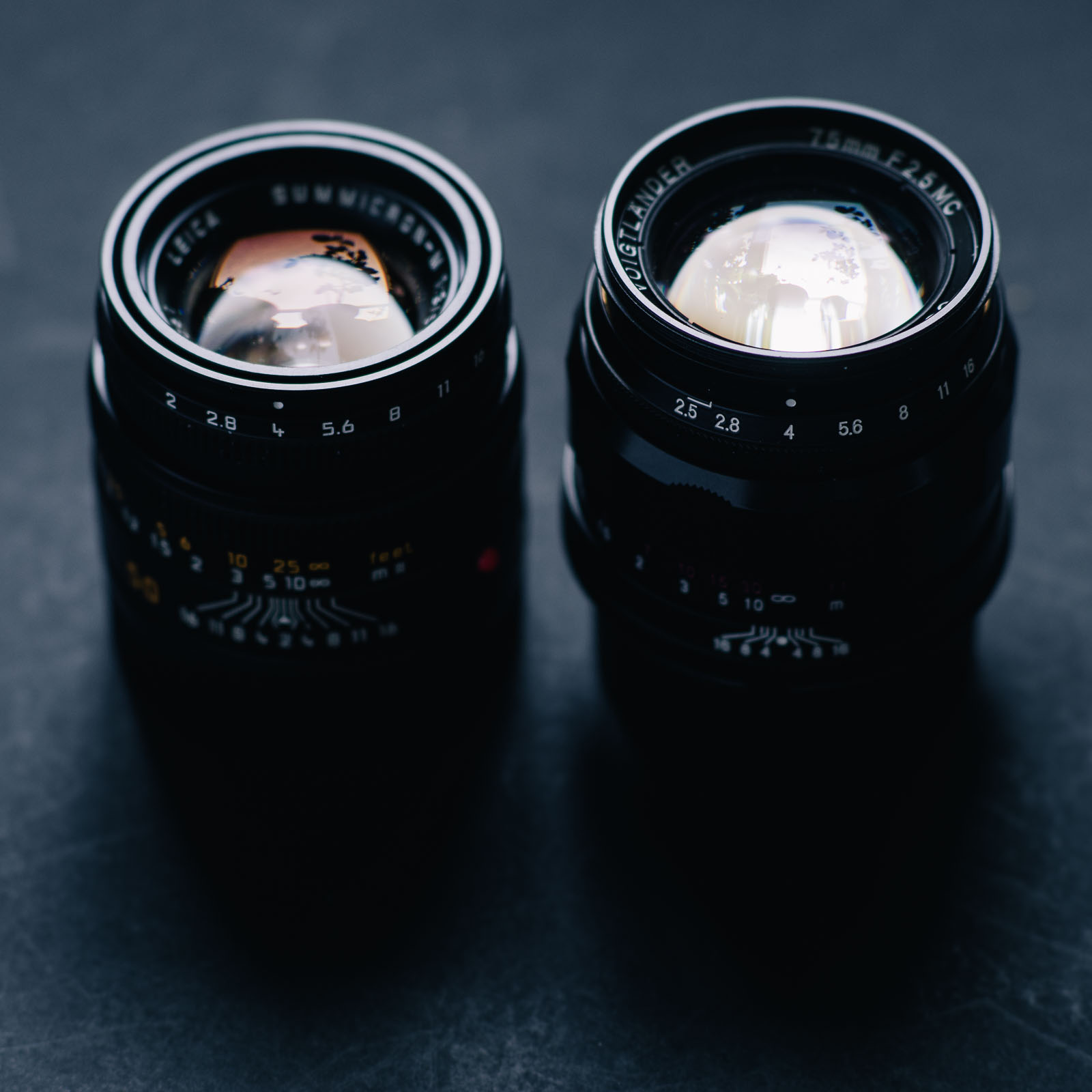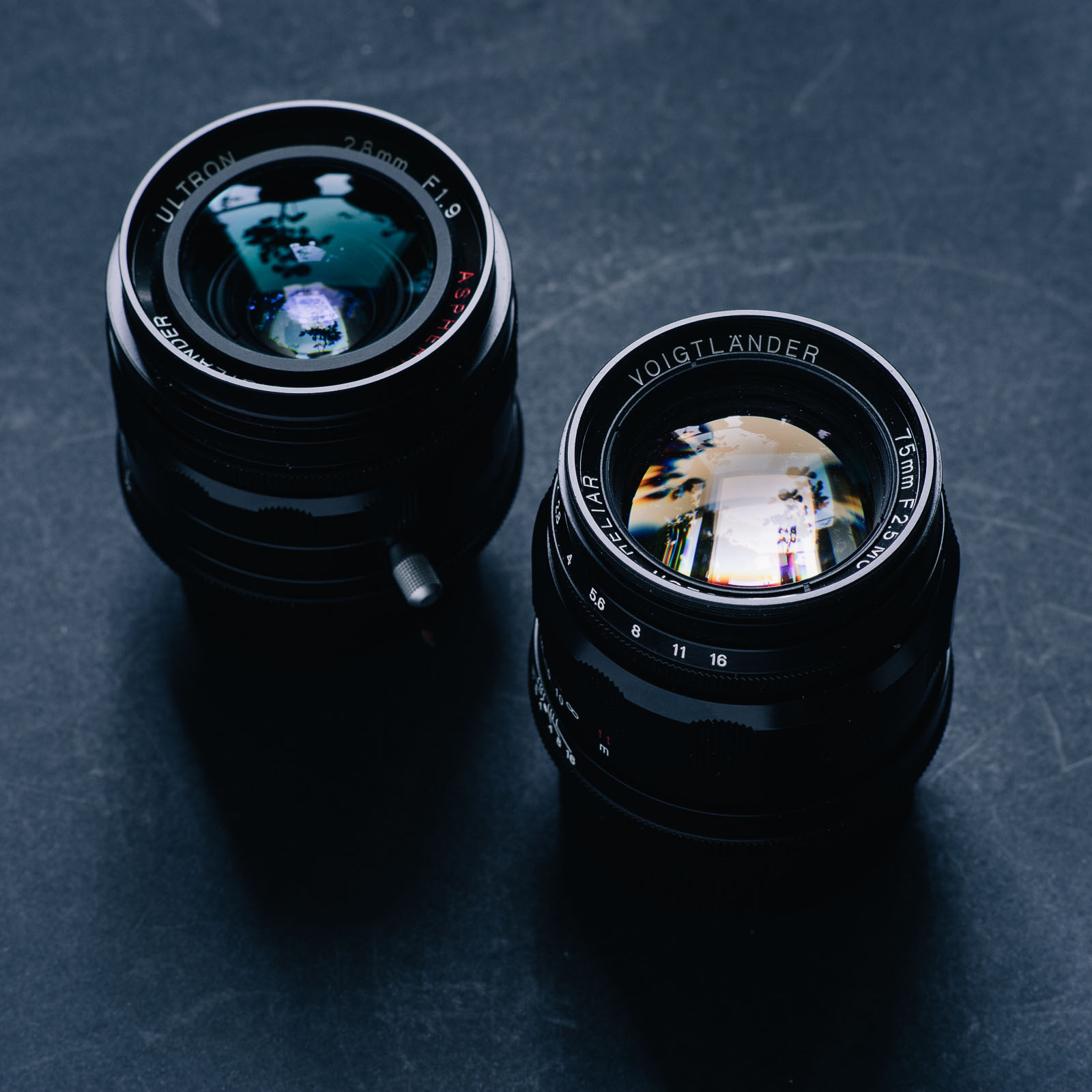 The Heliar 75/2.5 and Ultron 28/1.9 – the exteriors of these two lenses are very similar. Optically they behave very different from each other though.
