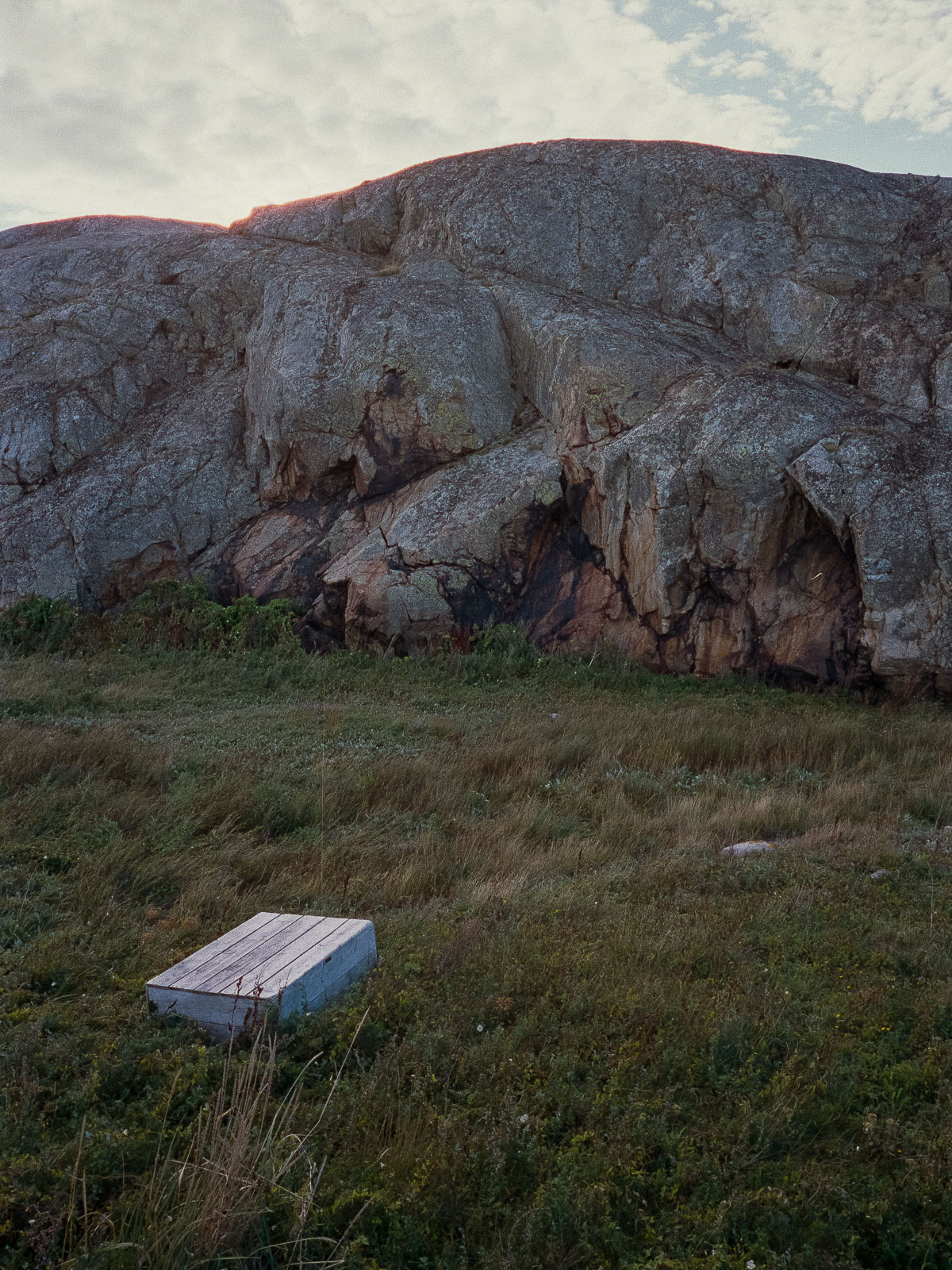 The charcoal sea has thrown all sorts of debris onto land. A pallet on the cliffs catches my eye. There’s rain coming. About time to head indoors. I grab my camera from the bag, quickly set exposure, focus, compose and shoot, wind the shutter and put it back in the bag. I lean into the wind and start to make my way back home.
