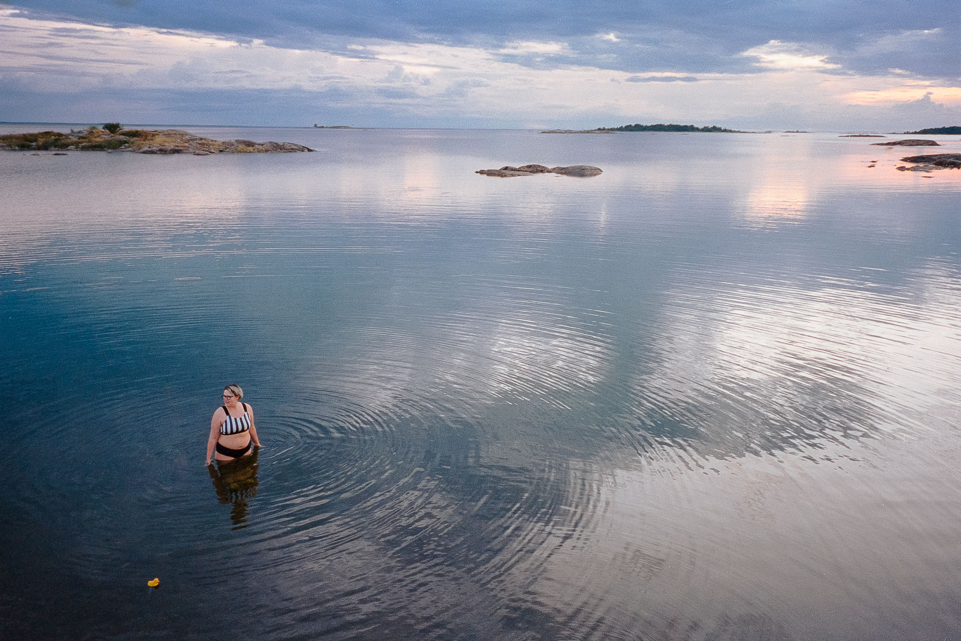 We head for a late afternoon swim. The sun moves lower in the sky and the wind drops to the gentlest breeze. The Skopar 28 is perfect for capturing the tranquil scene.