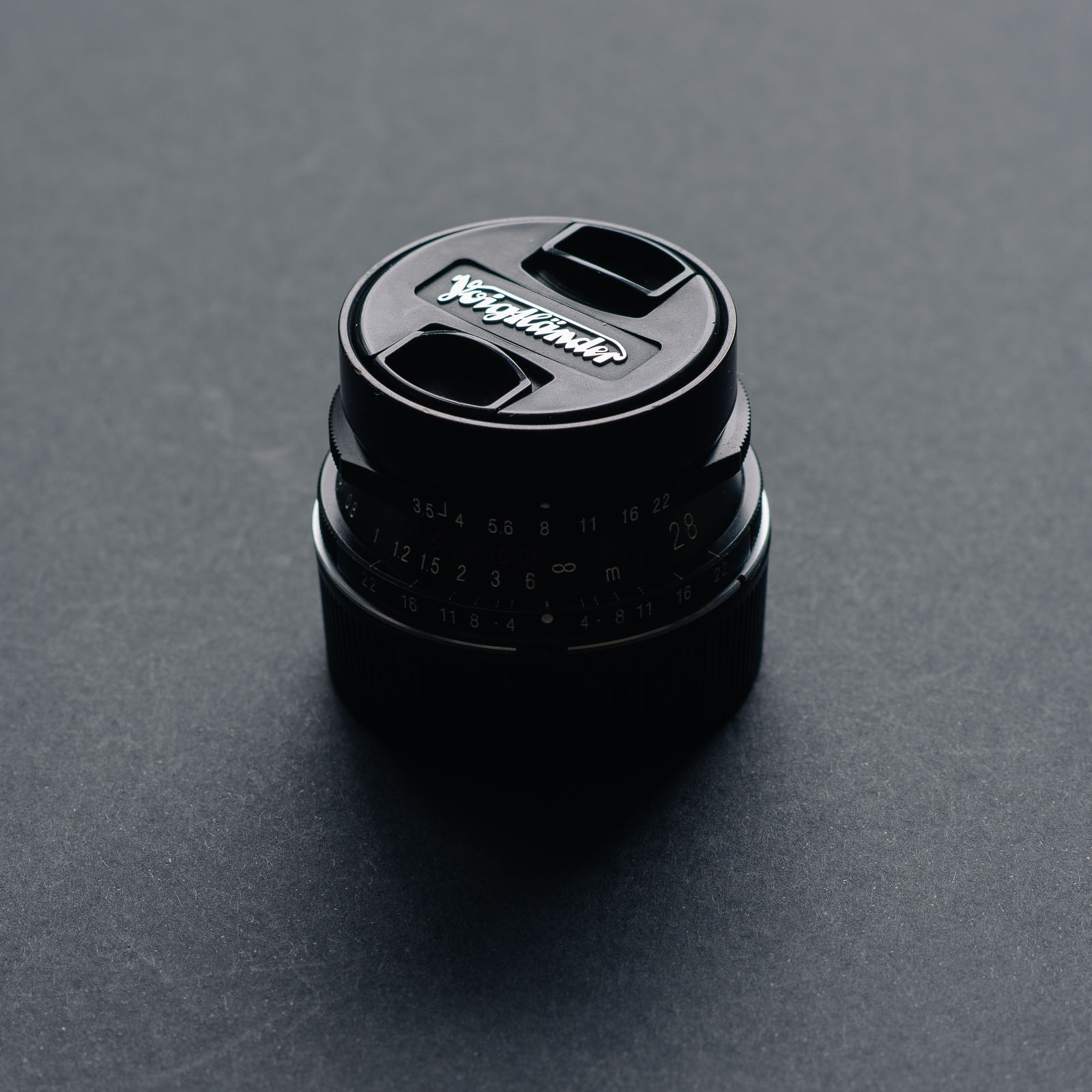 The cap for my lens was misplaced when I bought it, but as far as I can tell the lens comes with the same slip on one as the Skopar 50. I’ve mostly been using it with a pinch cap as that fits really nicely into the screw in hood.