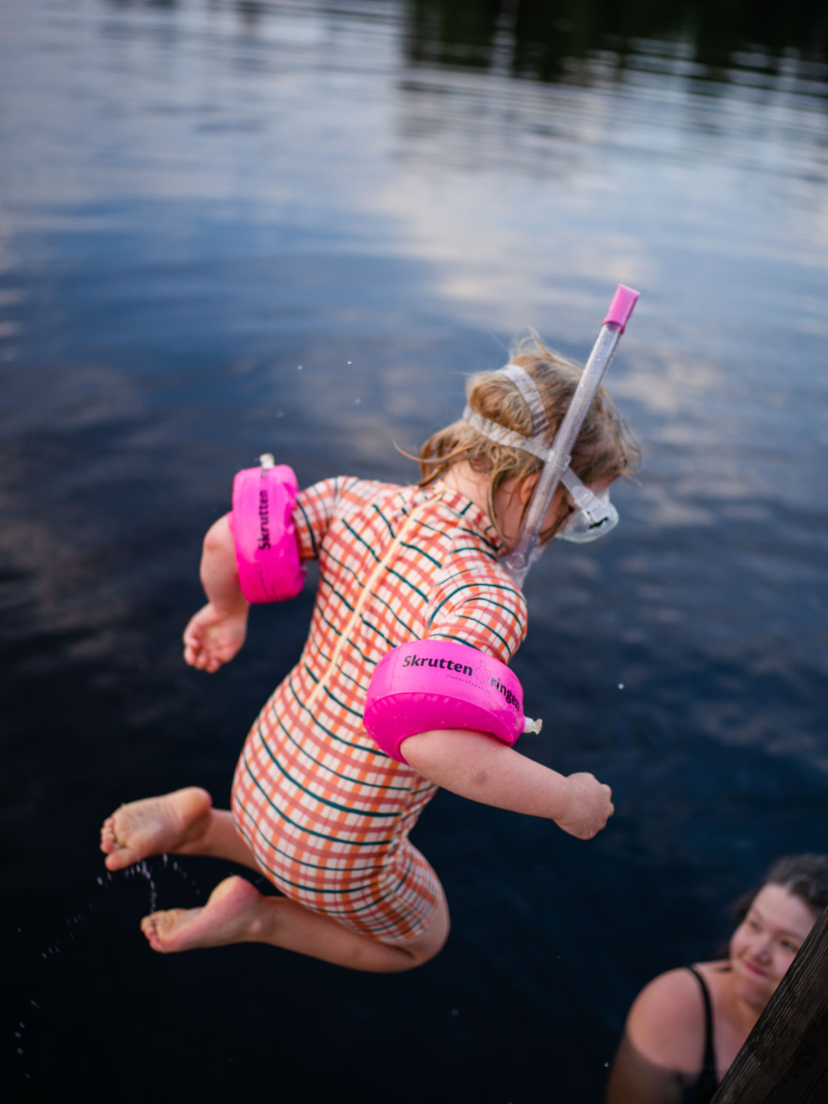 We jump on the bikes and ride down to the harbour, kids in the back. We had been working in the sun all day to tear the roof off of the guest house. A swim sounds pretty good about now.