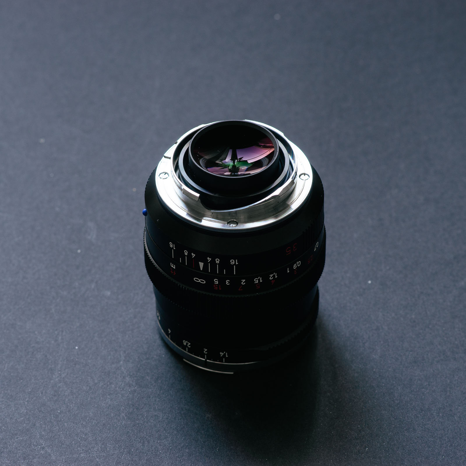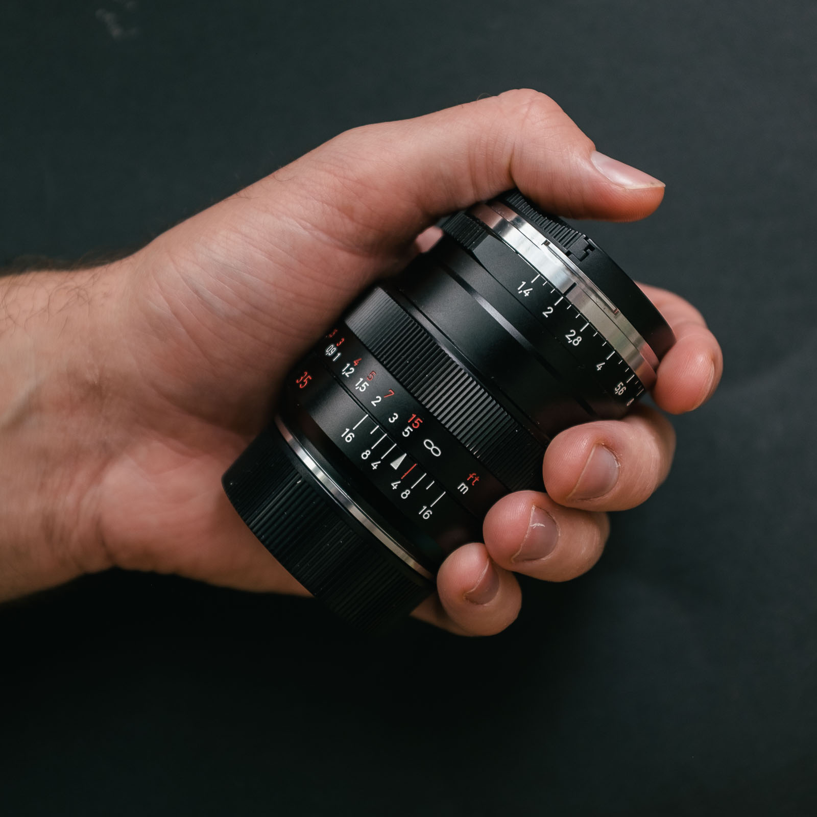 The ZM Distagon offers the familiar ZM line ergonomic traits, including the third stop aperture settings and focusing nub.